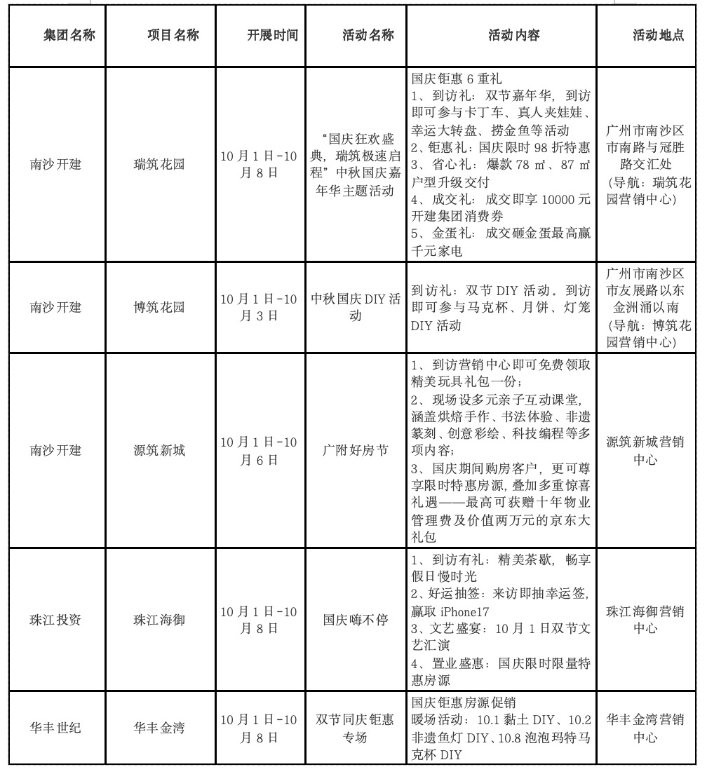 此外,国庆中秋八天超长假期,南沙各大楼盘早已备好一场“好看、好玩、好划算”的置业盛宴!带你玩转整个黄金周!