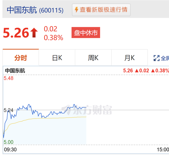 东航开盘大跌后反弹,收盘飘红0.38%。