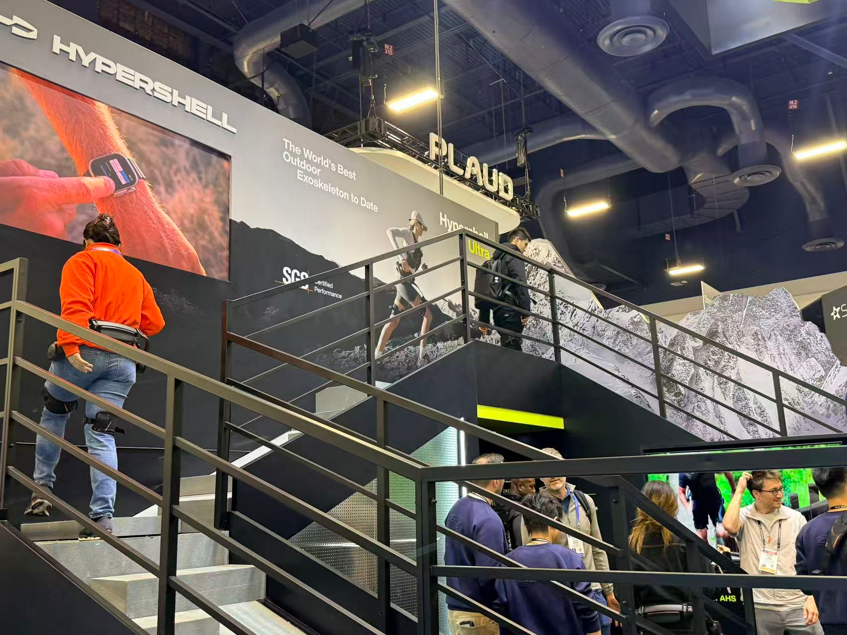 刚登上罗永浩的“科技春晚”的极壳(Hypershell),又带着外骨骼产品HyperShell X Ultra进入CES的展厅。现场,不少人等候体验产品穿戴以及进行实际爬楼体验。